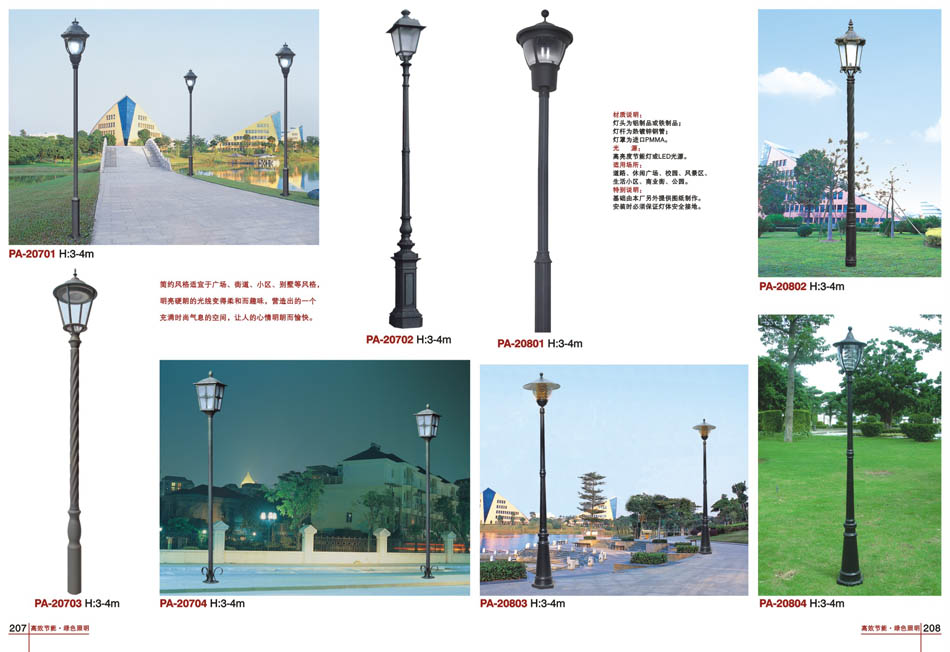 心情明朗而愉快。材質(zhì)說明:燈頭為鋁制品或鐵制品;燈桿為熱鍍鋼管;燈罩為進(jìn)口PMMA。光源:高亮度節(jié)能燈或LED光源適用場所:道路、休閑廣場、校園、風(fēng)景區(qū)、生活小區(qū)、商業(yè)街、公園。特別說明:基礎(chǔ)由本廠另外提供圖紙制作。安裝時必須保證燈體安全接地。