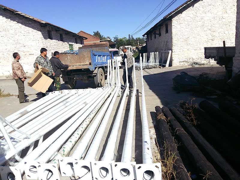 工程現(xiàn)場(chǎng)村民們正在轉(zhuǎn)運(yùn)太陽(yáng)能路燈燈桿
